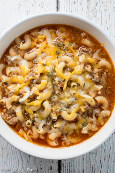 Chili Pasta Soup. It’s a marriage between chili and mac and cheese!