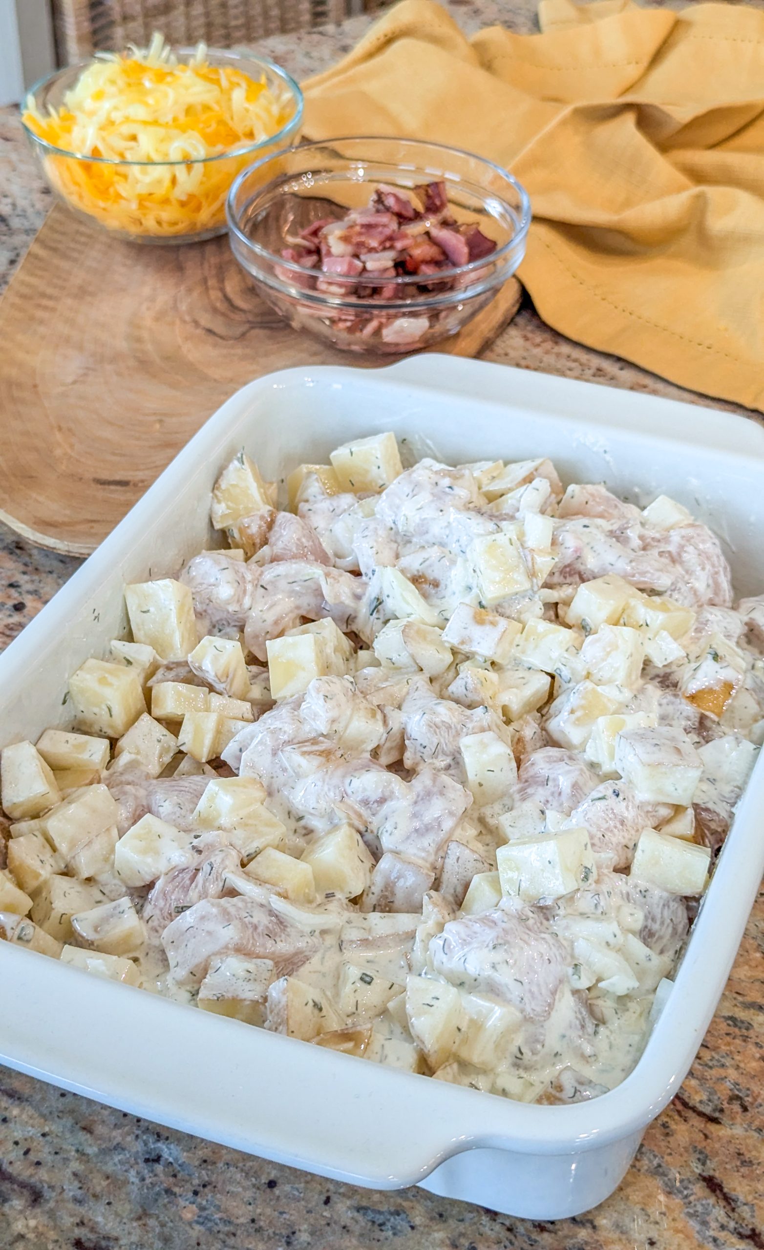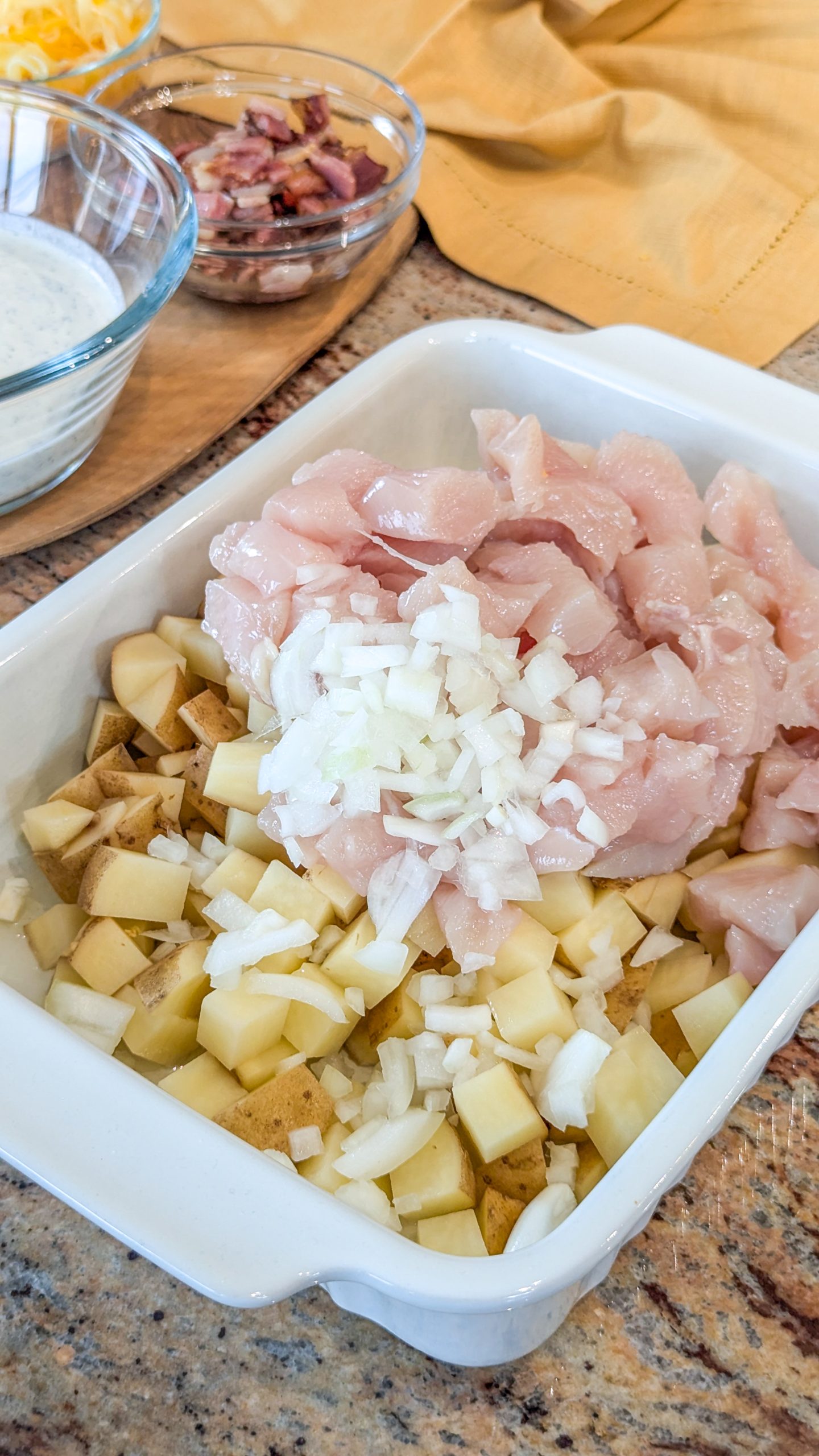 The base of this dish features tender chunks of chicken breast or thigh, which are cooked until juicy and seasoned to perfection. The chicken is combined with diced potatoes, which are pre-cooked to ensure they become tender and flavorful as they bake. The ranch dressing mix infuses the casserole with a zesty, herby flavor that complements the other ingredients beautifully.
