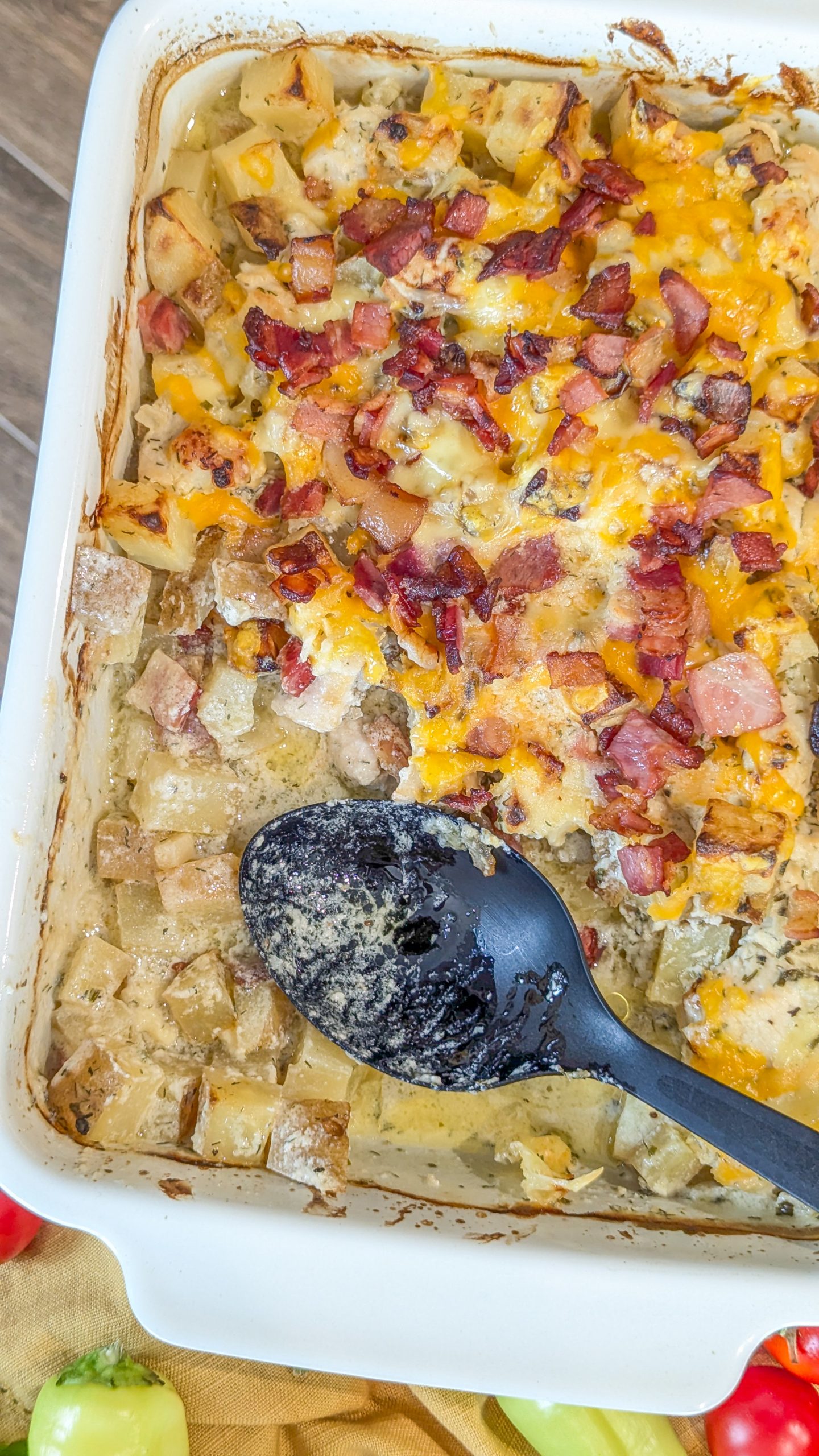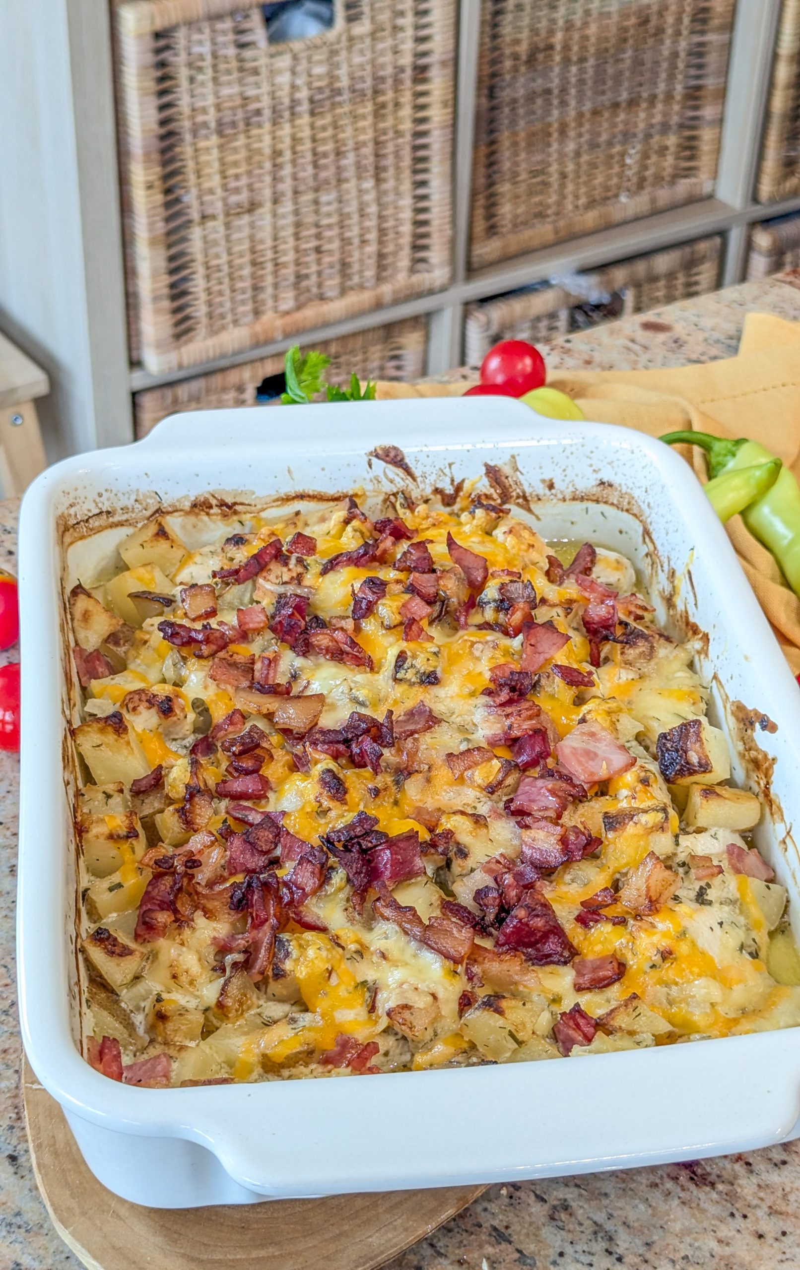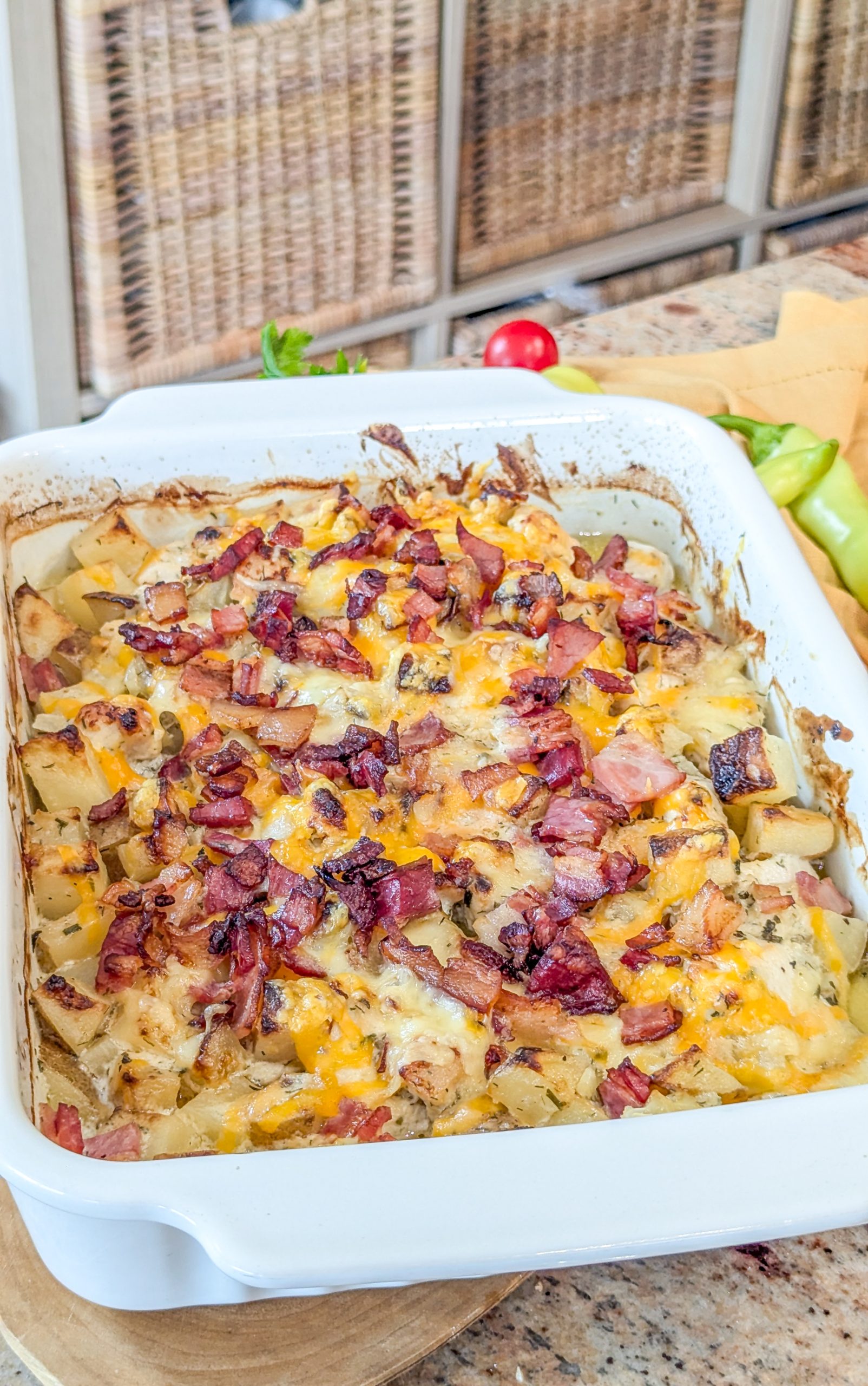 Loaded potato and chicken ranch casserole is the ultimate comfort food, combining hearty ingredients into a satisfying dish perfect for family dinners or casual gatherings. This recipe combines the beloved flavors of loaded baked potatoes with tender chicken, all seasoned with ranch dressing mix for a savory, tangy twist. With its hearty texture, cheesy goodness, and flavorful toppings, this casserole is a true crowd-pleaser that brings warmth and satisfaction to every bite. I love to make this dish for a perfect summer or fall supper for the whole family.